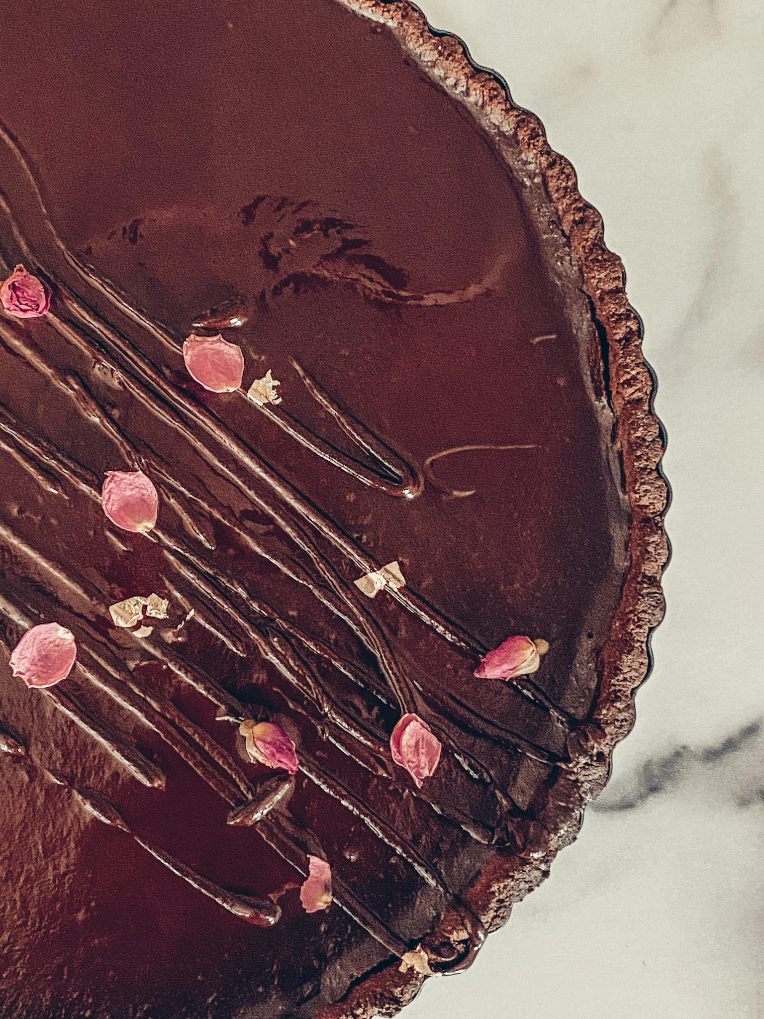 When in doubt make a chocolate tart. My favorite recipe comes from Downshiftology https://downshiftology.com/recipes/chocolate-truffle-tart/. It’s rich, smooth, and just the right amount of sweetness. It’s also gluten free and can be dairy free. Adding dried rose petals and edible gold leaf makes this a perfect Valentine’s Day dessert for a dinner party or Galentine’s get-together.