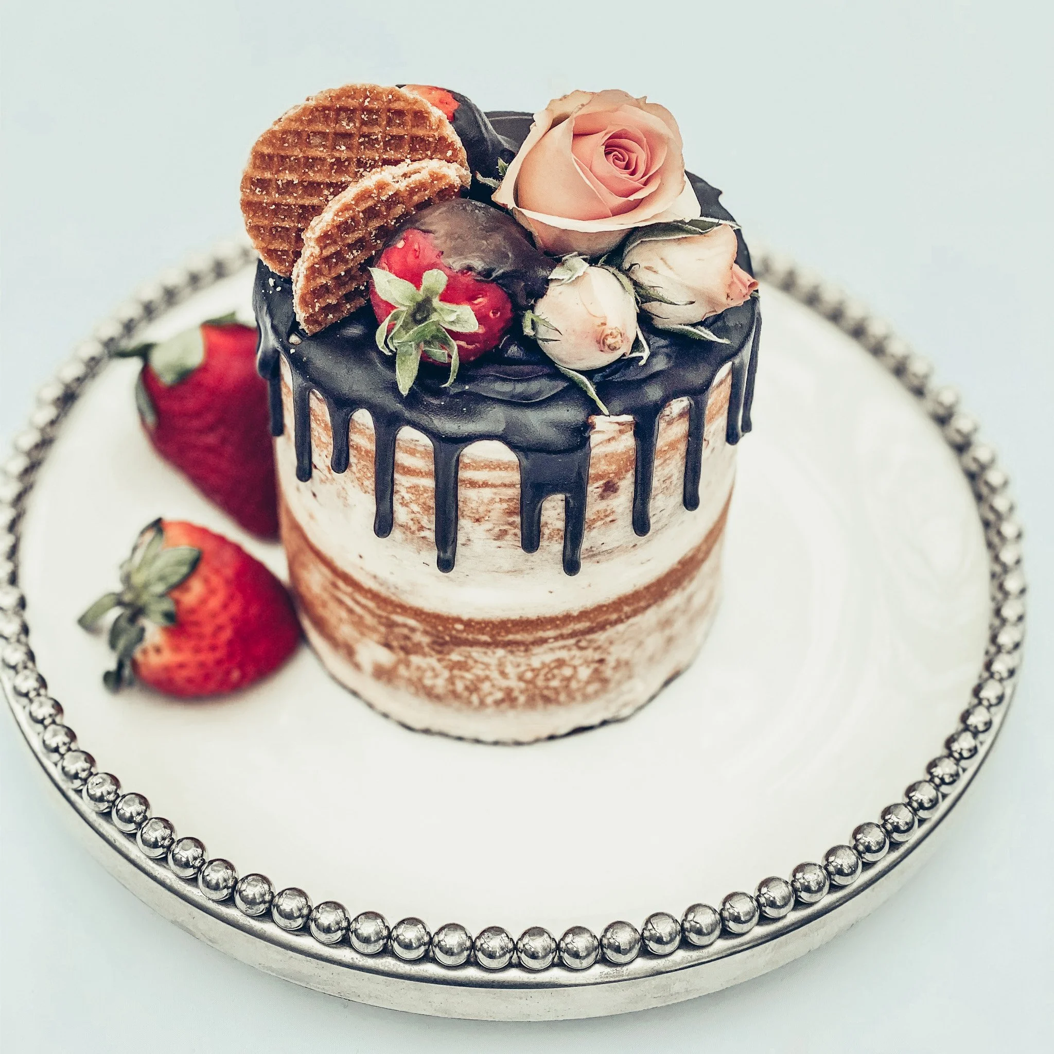 The OG. That first cake I made out of boredom (husband had deployed) and posted on my IG. Mini cakes are so fun and cute for special occasions. Vanilla cake layers with a strawberry filling and chocolate drip made this a perfect little Valentine’s Day treat.